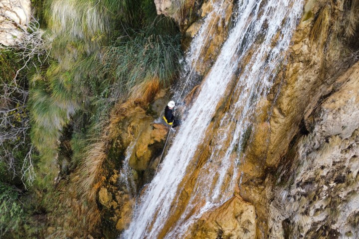 We will enter its most exciting section, designed for adrenaline and nature lovers. During the descent, you will face four abseils, including a 60-metre abseil that will take your breath away. You will also enjoy a big jump that will test your courage and a natural slide that will make you feel pure fun.