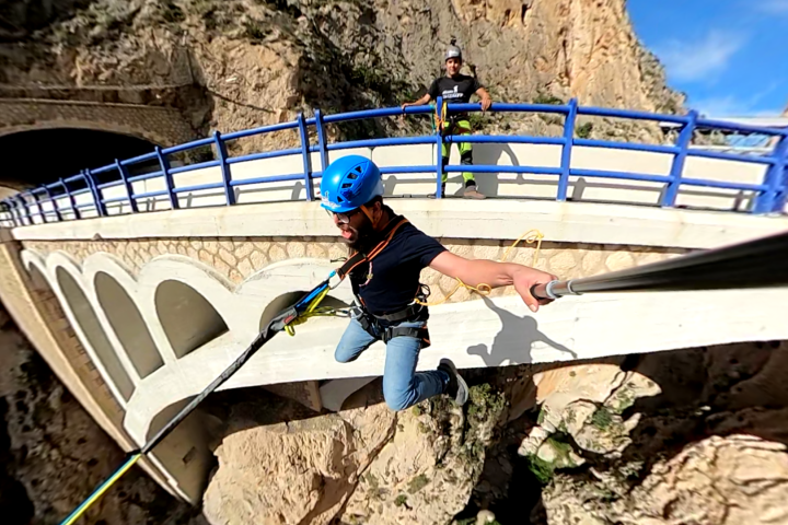 Le saut à l’élastique à Mascarat que nous proposons à Alicante Aventura se déroule entre deux ponts, l’un moderne et l’autre historique, ce dernier étant l’un des principaux ouvrages d’art construits à la fin du XIXe siècle.